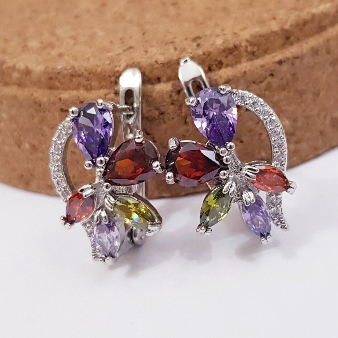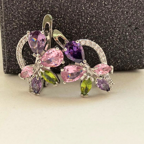 Серьги коллекция "Дубай" посеребрение, разноцветные камни, 1267, арт.647.452