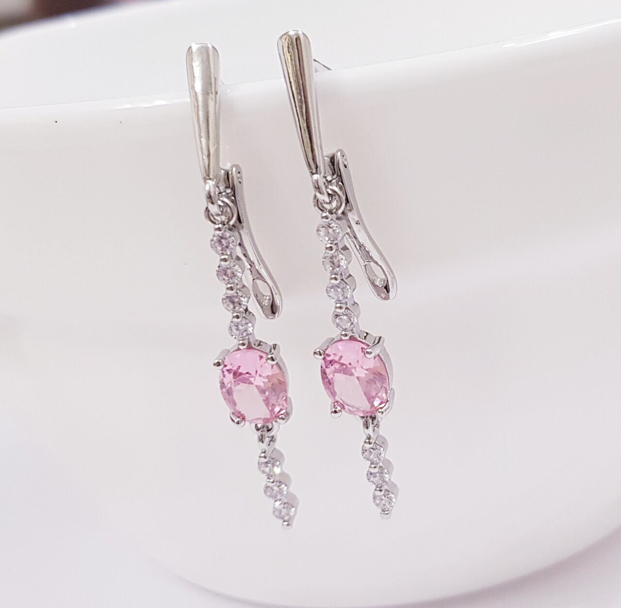 Серьги коллекция "Дубай" посеребрение, розовый камень, 211201, арт.647.947