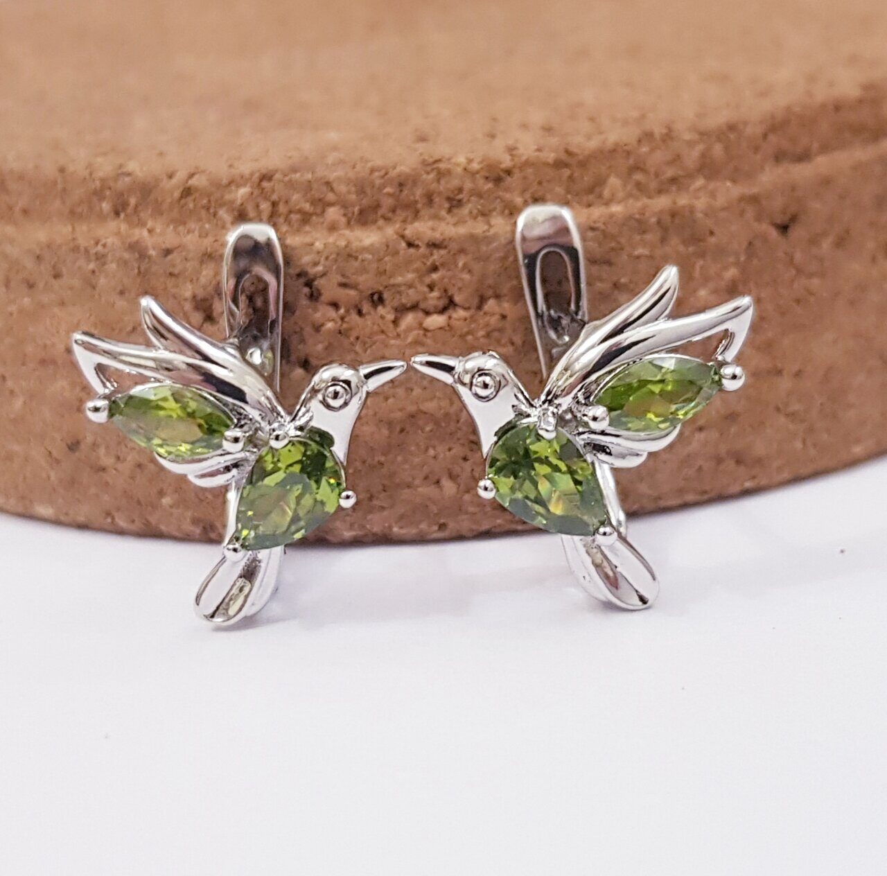 Серьги коллекция "Дубай" посеребрение, зелёные фианиты, 10106, арт.647.894