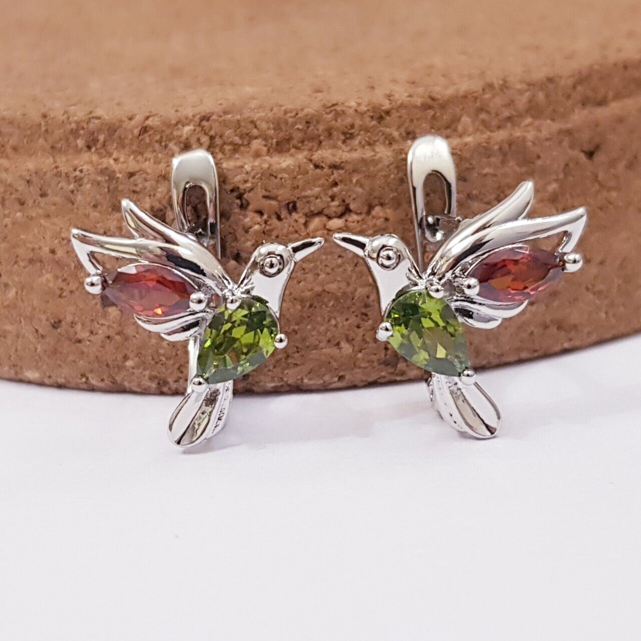 Серьги коллекция "Дубай" посеребрение, зелёный и красный фианиты, 10106, арт.647.896