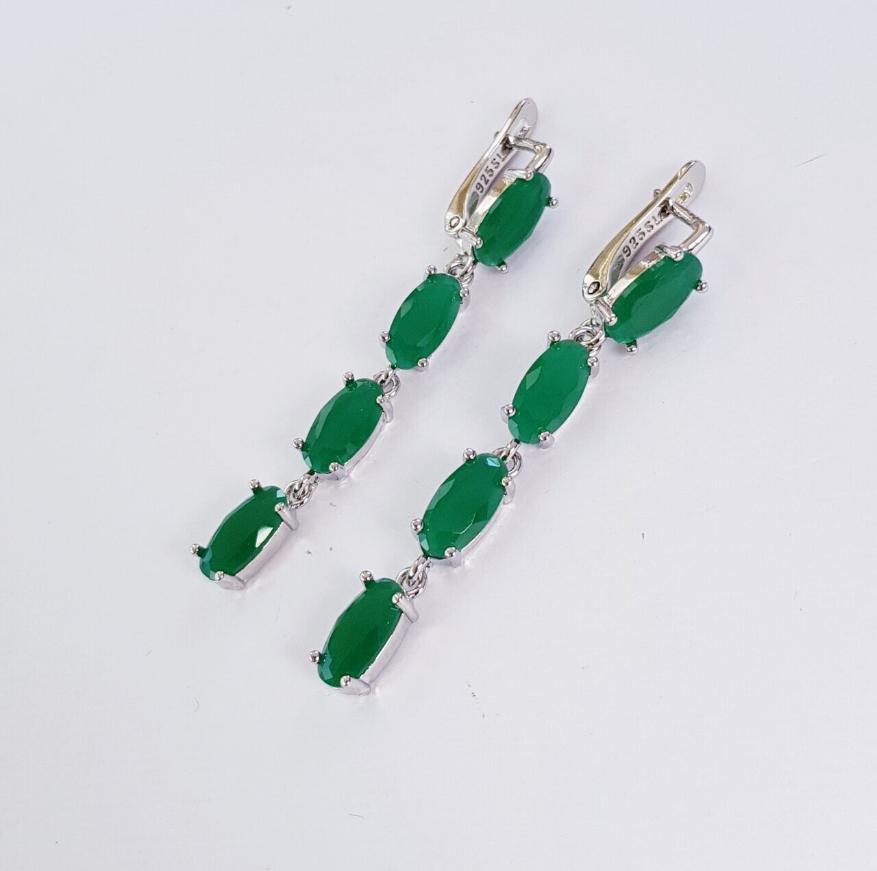 Описание Стильные серьги висячие, под серебро, с светло-зелеными фианитами, застежка - английская. Оригинальный стиль сережек подойдет к любому вашему образу, куда бы вы не собрались: учебу, работу, встреча с друзьями, вечеренку. Материал: металл, стразы. Размер: 5,2*0,5 см. Вес: 6 гр.