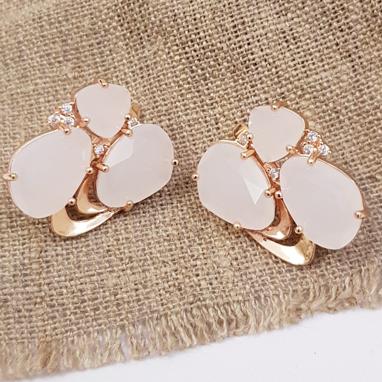 Серьги коллекция "Эксклюзив" покрытие позолота, молочно-матовые камни, крупные, 272015, арт.647.263
