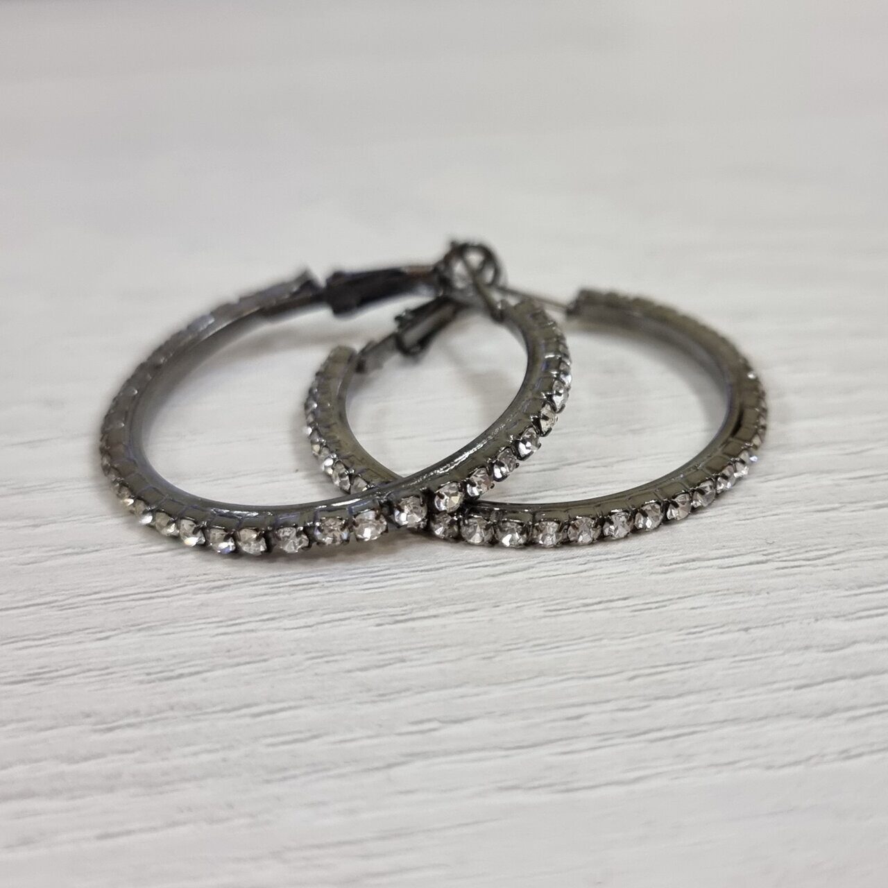 Серьги конго, цвет чернение, камень белый переливающийся, арт.008.293