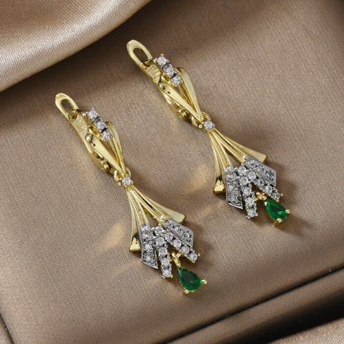 Серьги конго ювелирная бижутерия Итальянское золото (покрытие посеребрение и желтое 14к), вставка: фианит, цвет: прозрачный, арт.217.187