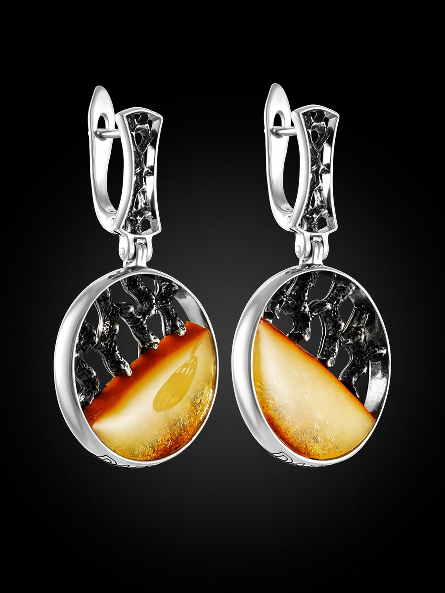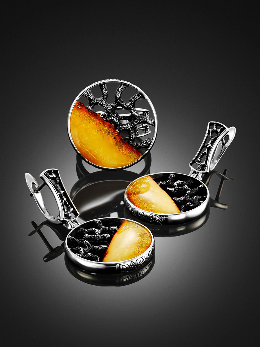 Серьги круглой формы «Модерн» со вставками медового янтаря