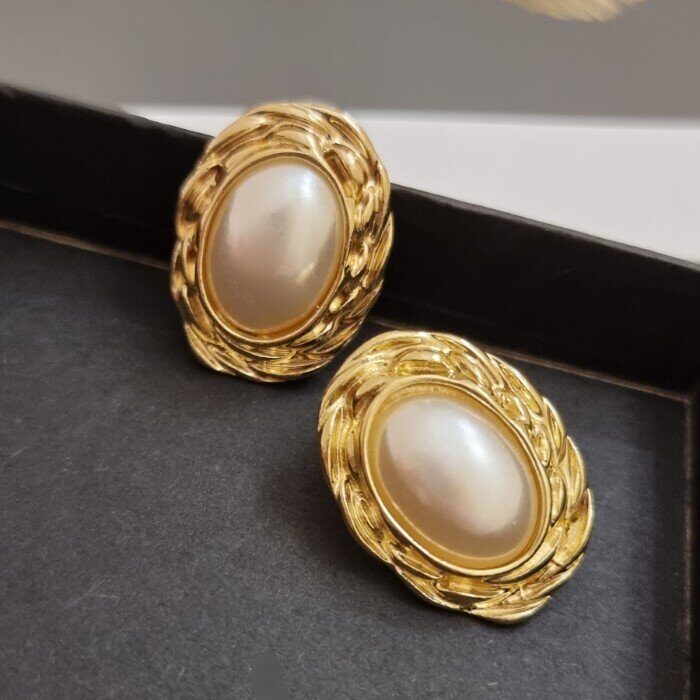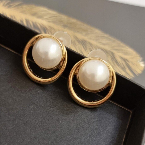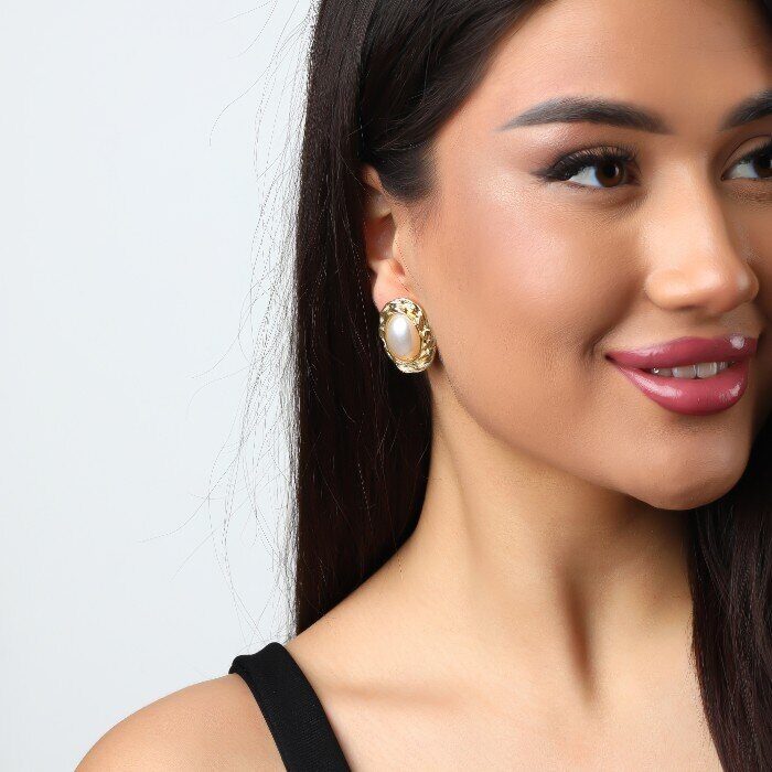Серьги круглые геометрические, цвет золотистый, вставка: иск.жемчуг, 05025, арт.001.497