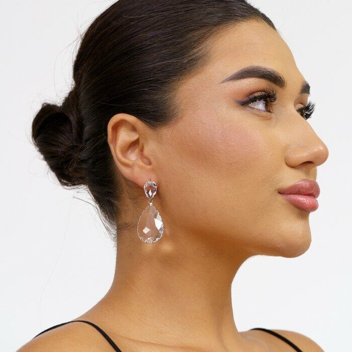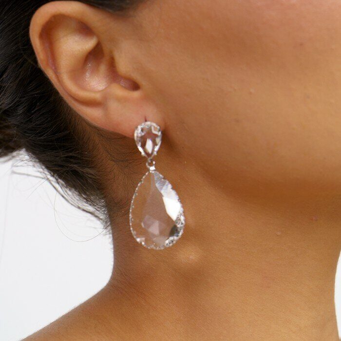 Серьги крупные под серебро, с прозрачным камнем"Miss Elisa" ,Уценка, арт.08.1261