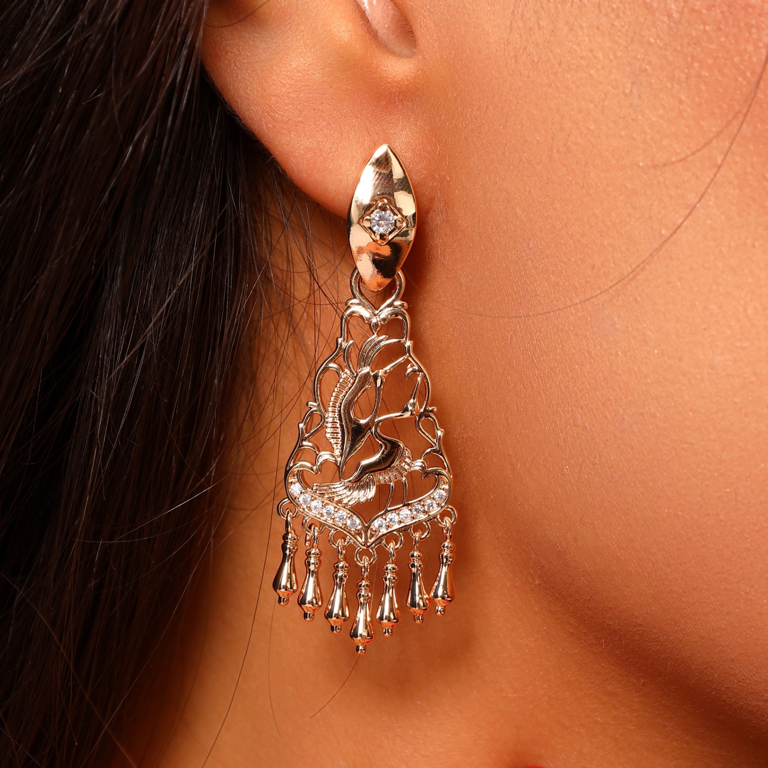 Серьги крупные ювелирная бижутерия коллекция "Дубай", покрытие позолота, вставка: фианиты, цвет: прозрачный, арт.214.965