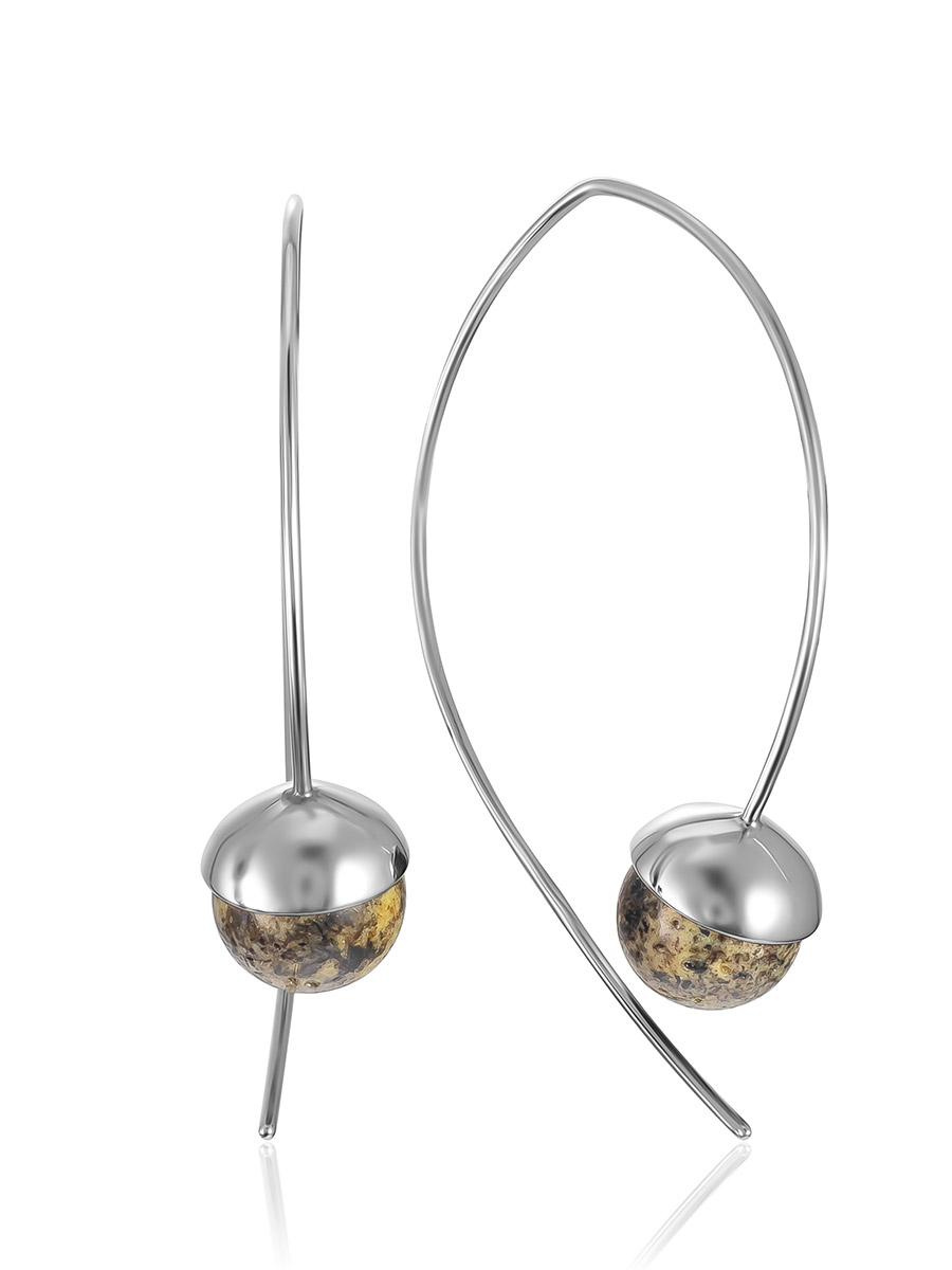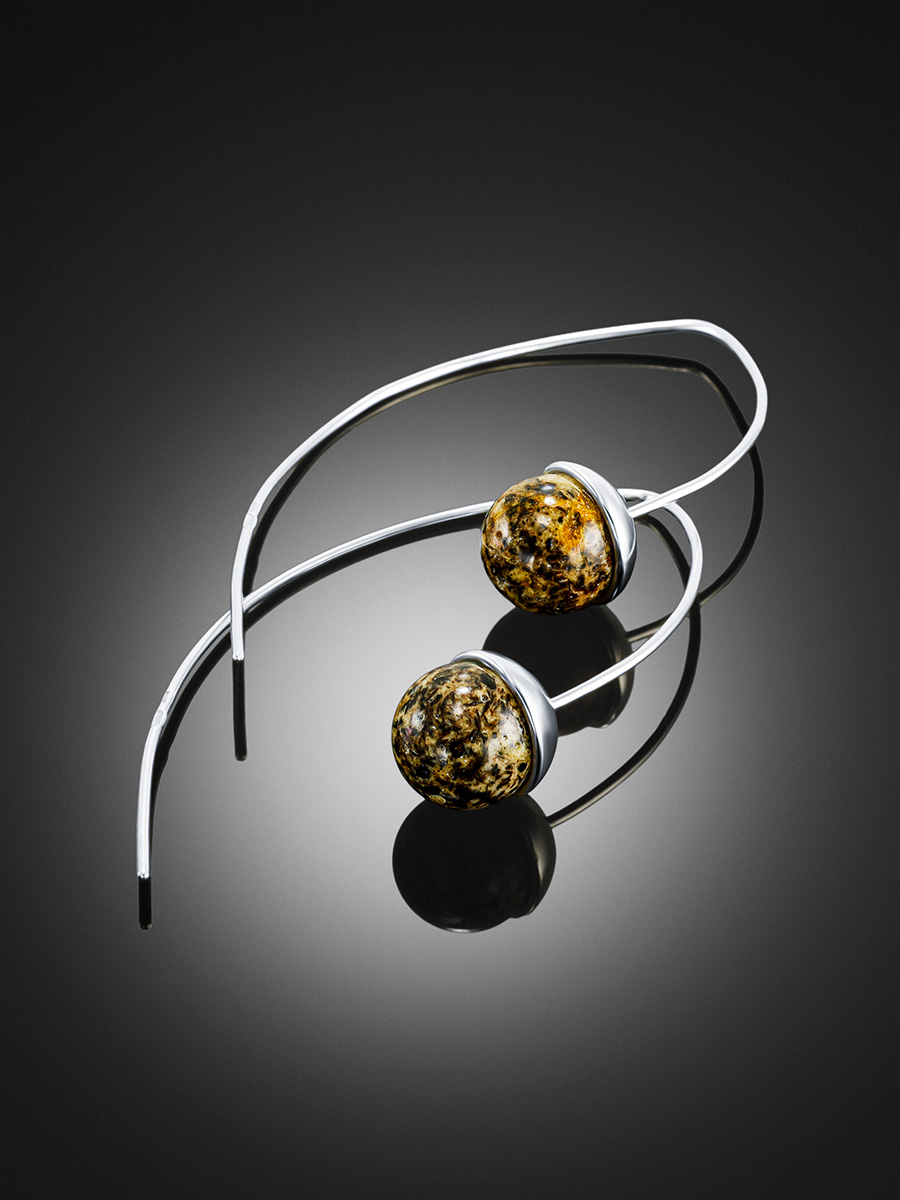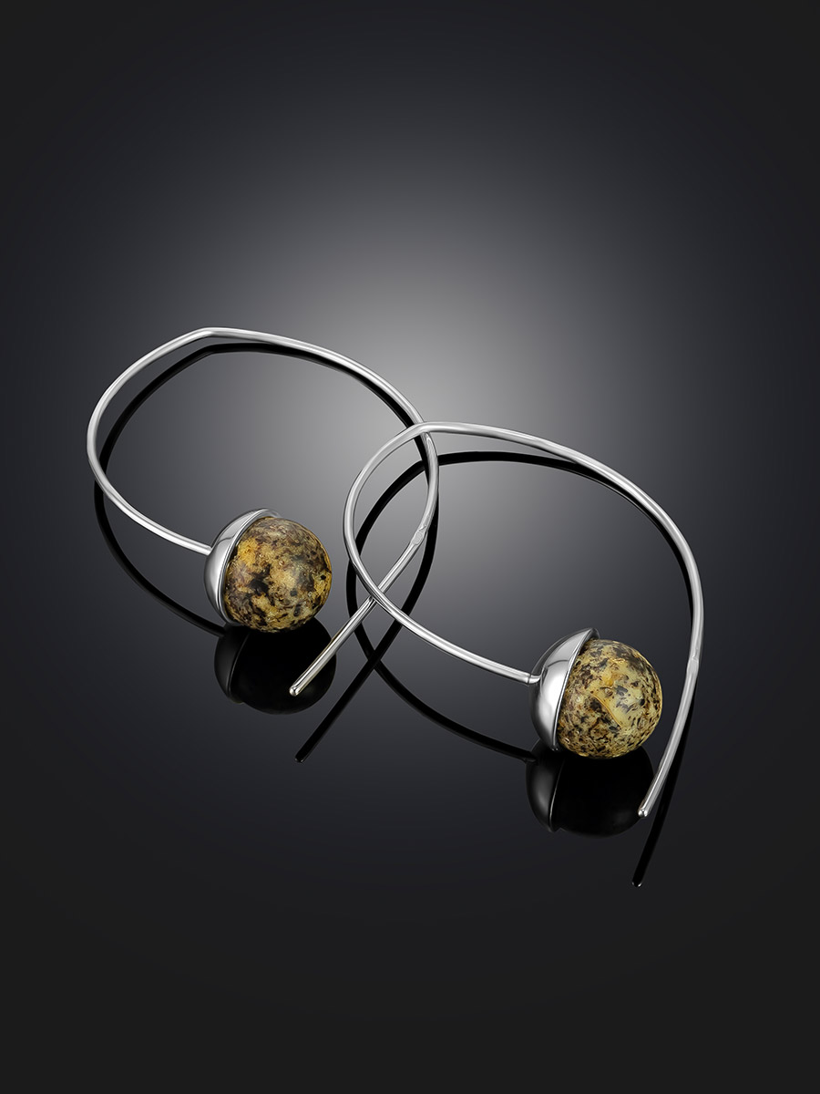 Серьги-крючки «Метеорит» с натуральным текстурным янтарём