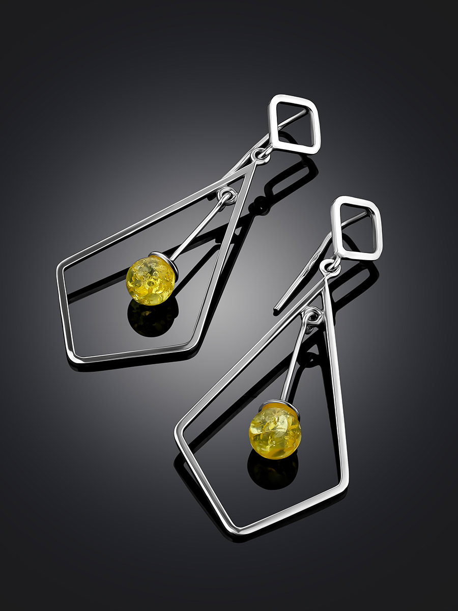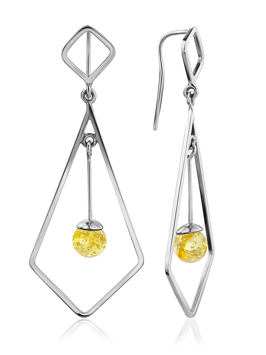 Серьги-крючки Palazzo с янтарём лимонного цвета