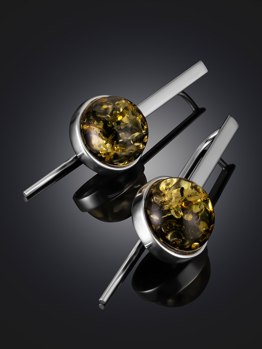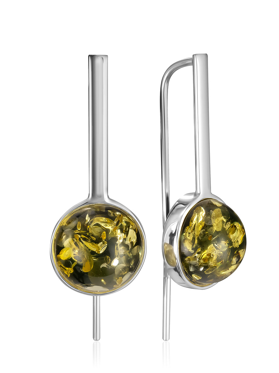 Серьги-крючки с искрящимся зелёным янтарём «Сорбонна»