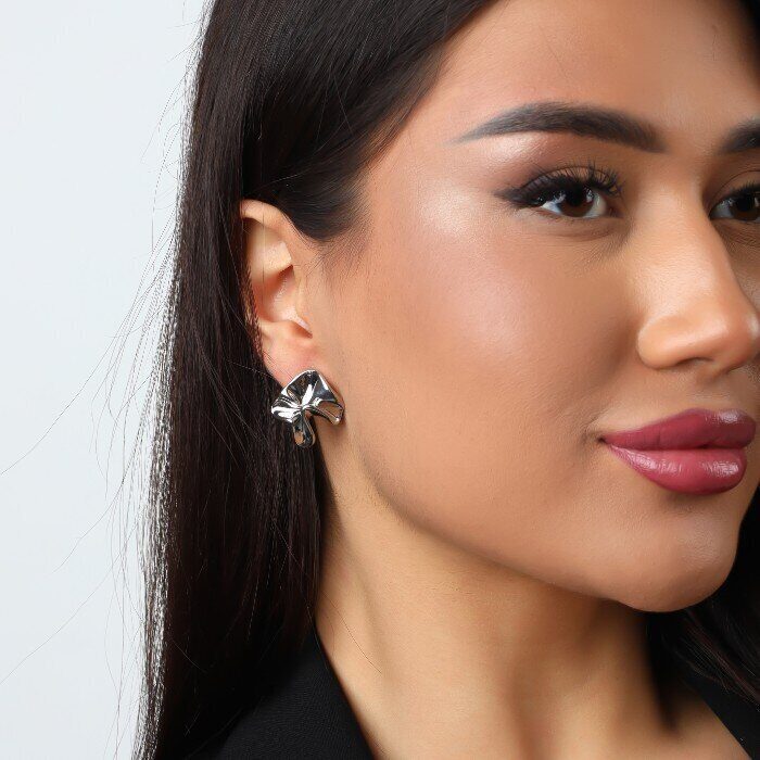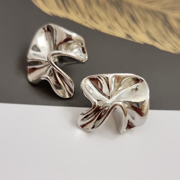 Серьги листья лотоса, цвет серебристый, 05025, арт.001.504
