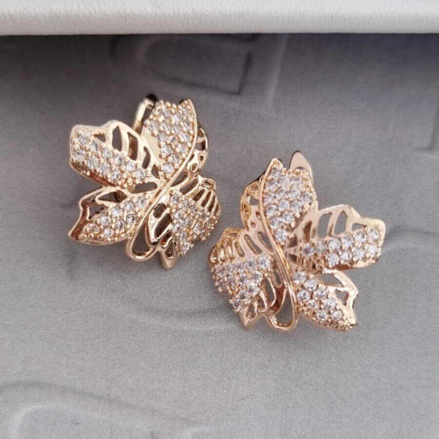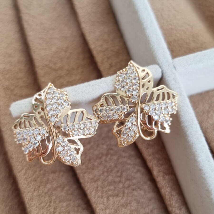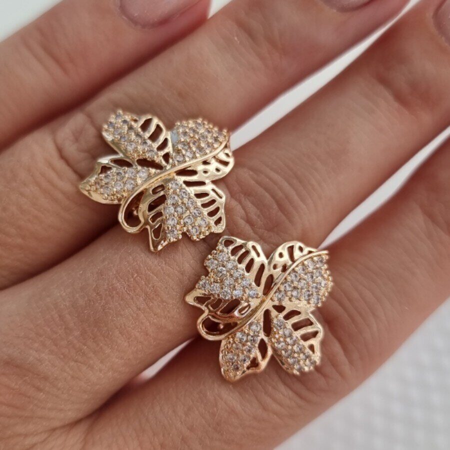 Серьги Листья, ювелирная бижутерия, покрытие позолота, 060, арт.217.006