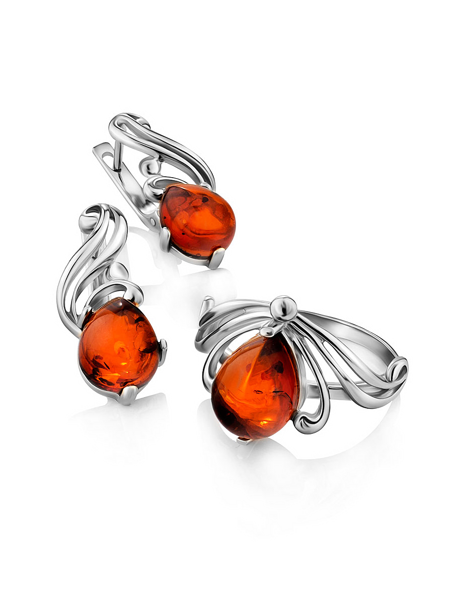 Серьги «Медея» из натурального янтаря коньячного цвета