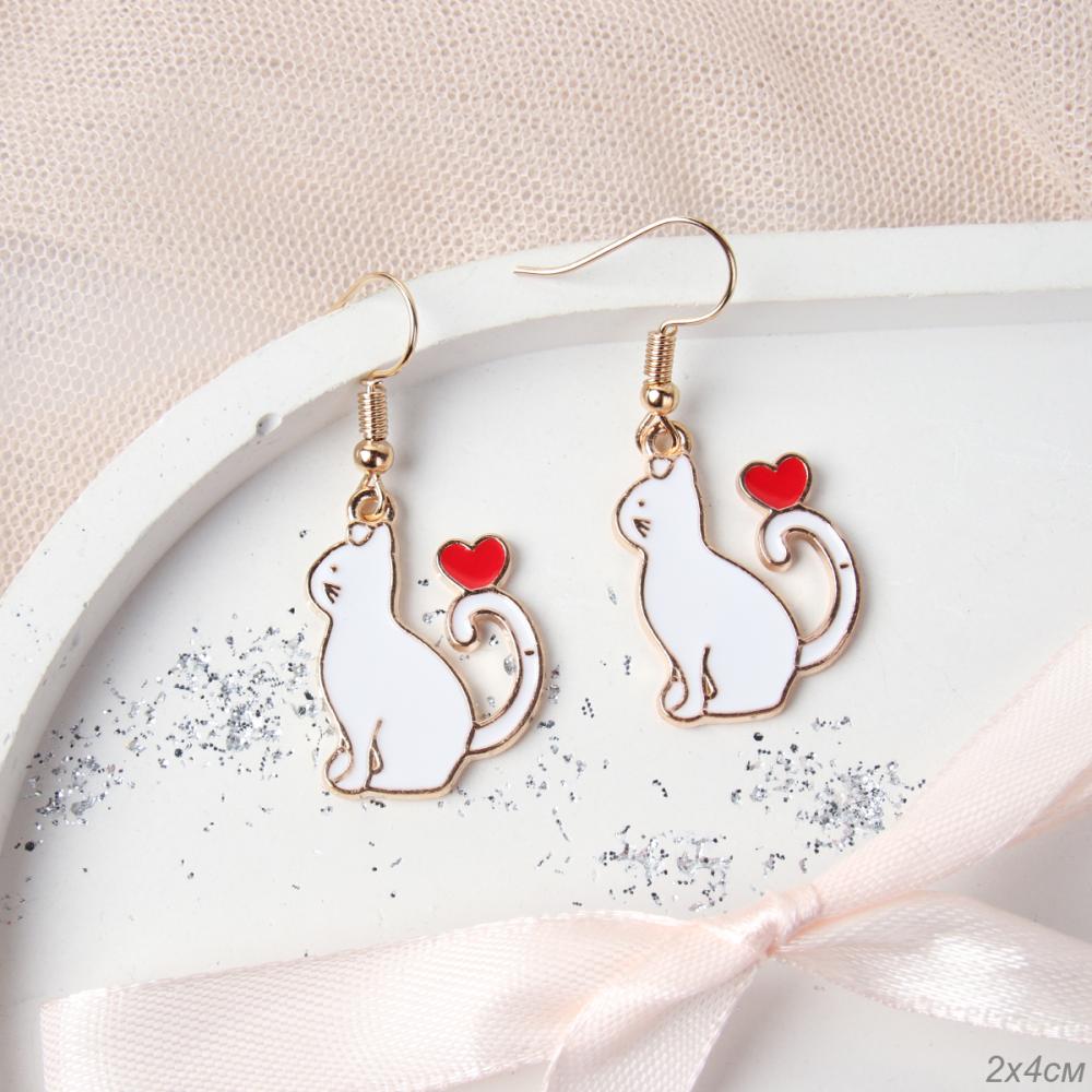 Серьги металл Белая кошка / ZJ3440 /уп 6/эмаль