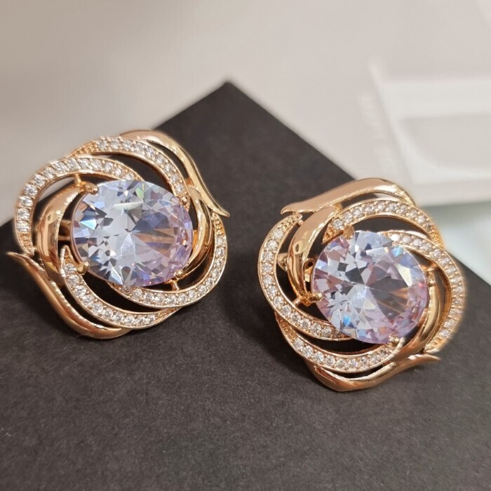 Серьги очень крупные ювелирная бижутерия Дубайское золото, с покрытием позолотой 18К, вставка: фианит, цвет: прозрачный переливающийся, арт.215.083
