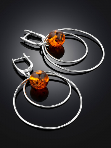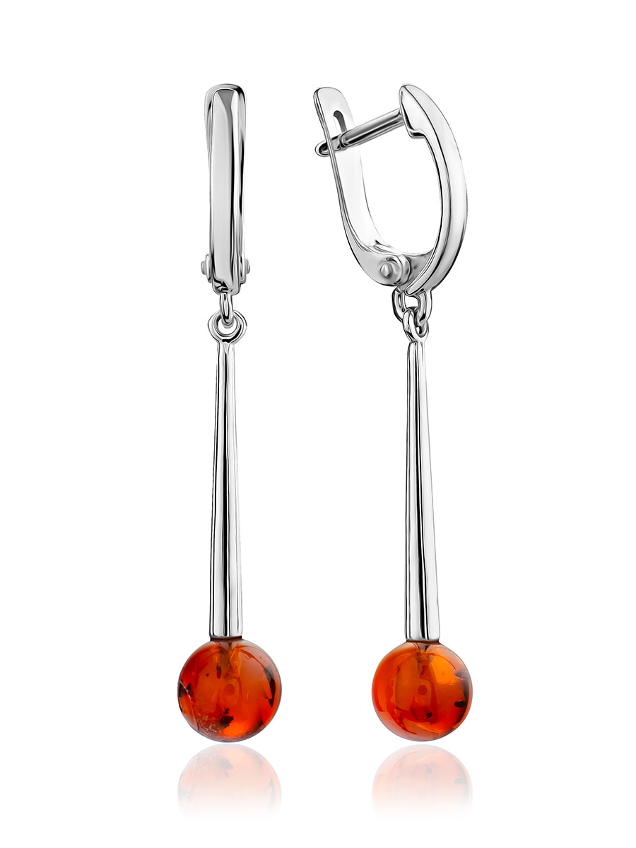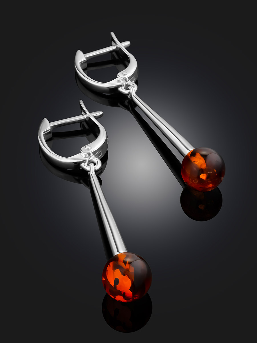 Серьги «Олимпия» с натуральным коньячным янтарём на удлинённом креплении