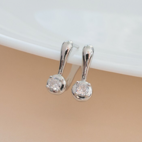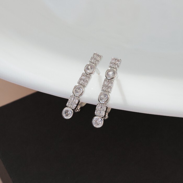 Серьги палочки ювелирная бижутерия, покрытие просеребрение, вставка: фианиты, цвет: прозрачный, арт.213.569