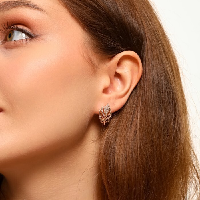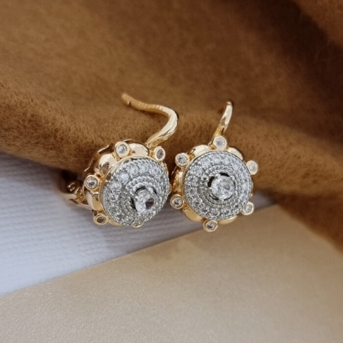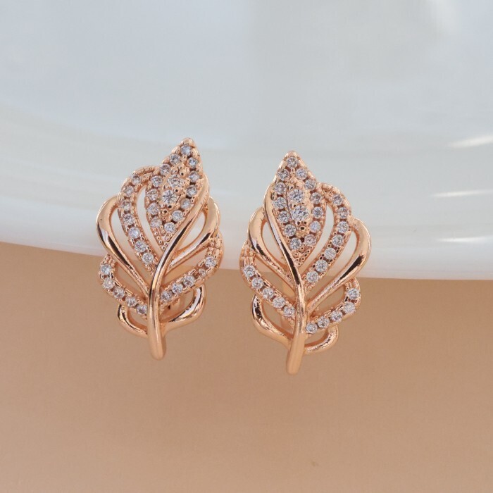 Серьги перо ювелирная бижутерия коллекция "Дубай", покрытие позолота, вставка: фианиты, цвет: прозрачный, арт.213.561