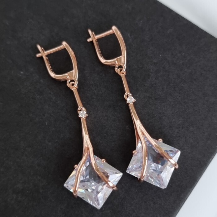 Серьги подвески длинные с прозрачным камнем, покрытие позолота 585 пробы, арт.212.063