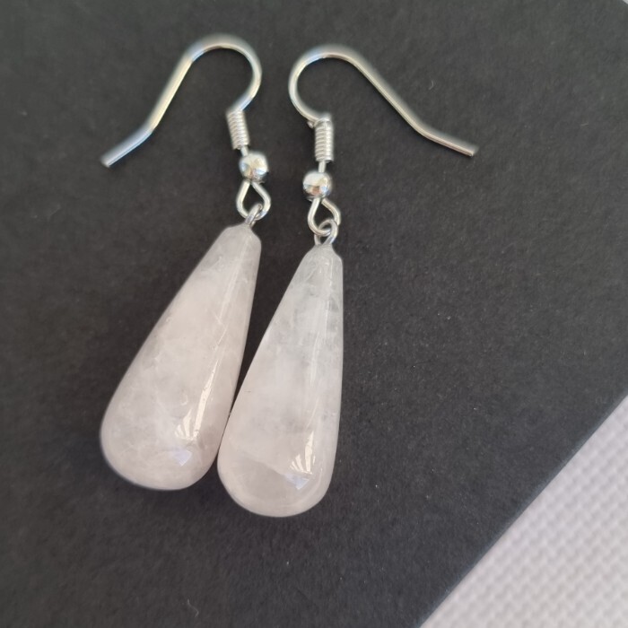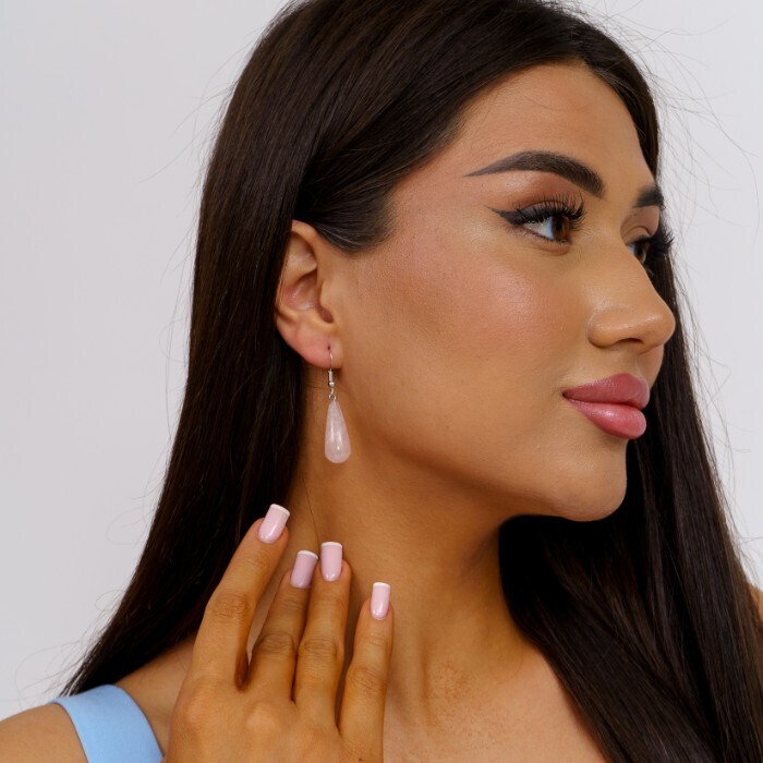 Серьги подвески крупные с натуральным камнем Розовый кварц, 1045, Уценка, арт.08.2311