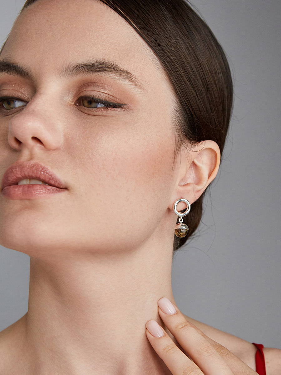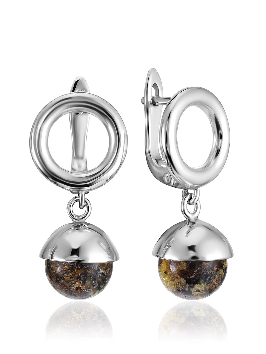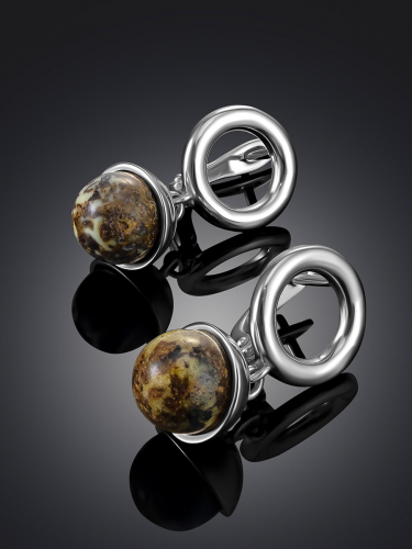 Серьги-подвески «Метеорит» с натуральным текстурным янтарём