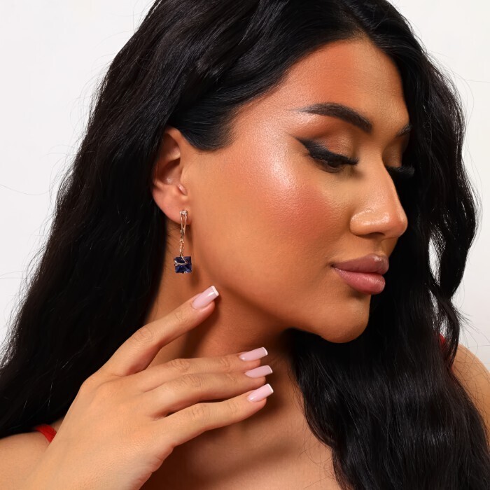 Серьги подвески с камнем ювелирная бижутерия коллекция "Дубай" покрытие позолота, вставка: фианит, цвет: синий, арт.314.539