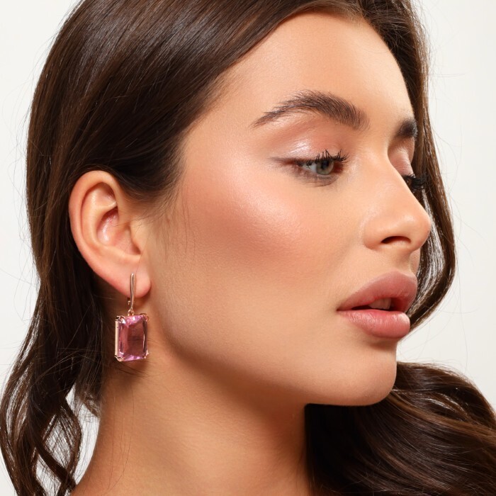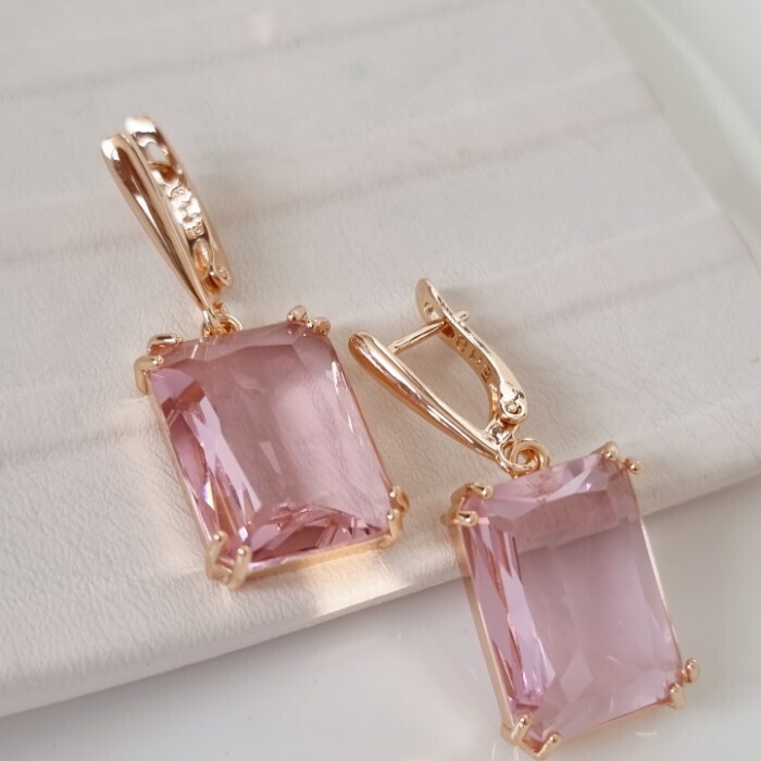 Серьги подвески с крупным камнем ювелирная бижутерия коллекция "Дубай", покрытие позолота, вставка: фианит, цвет: розовый, арт.314.613