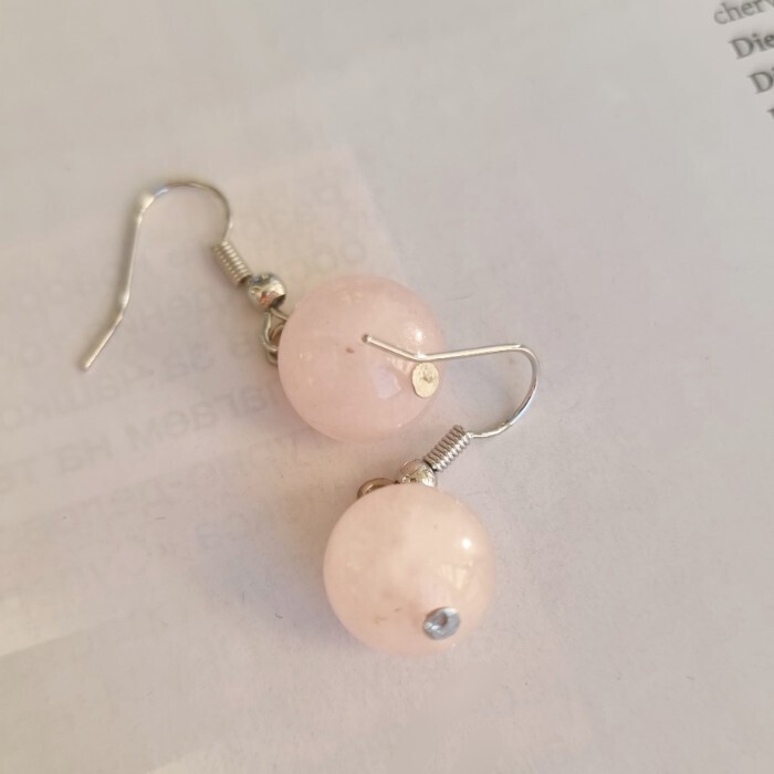 Серьги подвески шарики натуральный камень Розовый Кварц, 1026, Уценка, арт.08.2343