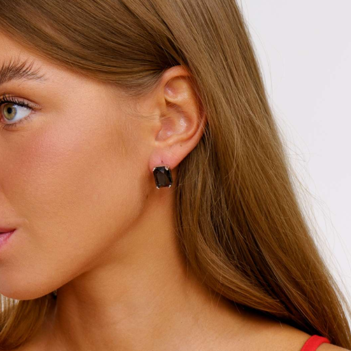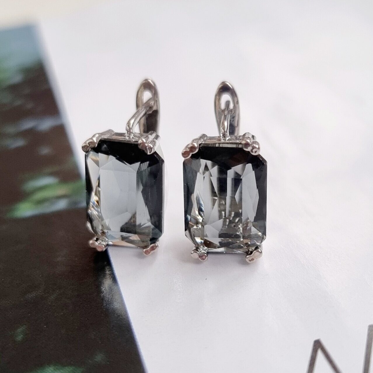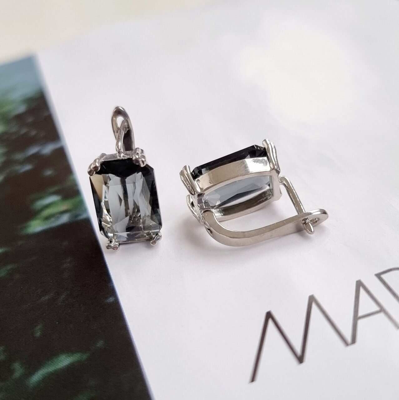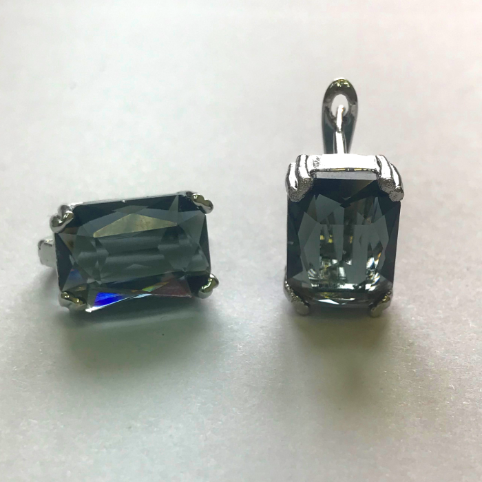 Описание Серьги, покрытие родий, черный камень. Размер: 1,5*1 см. Замок: английский. Материал: металл. Камень: стекло. Вес: 6 гр.