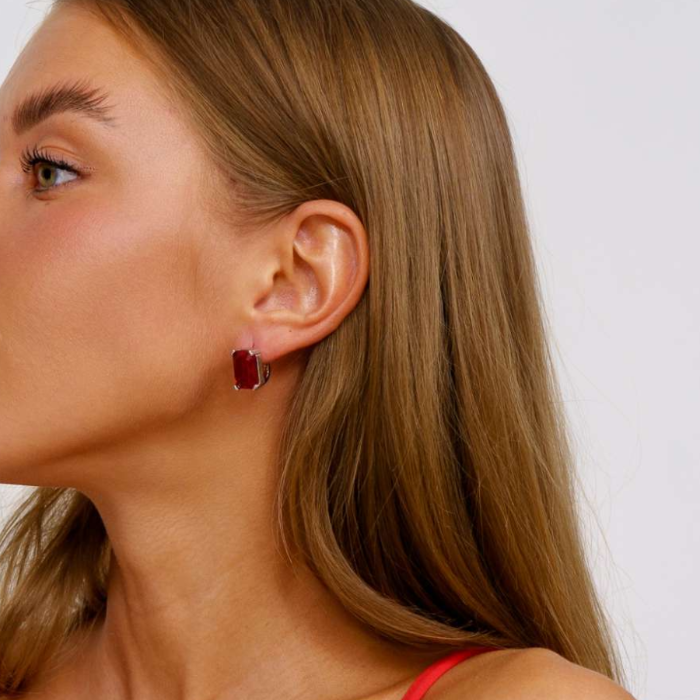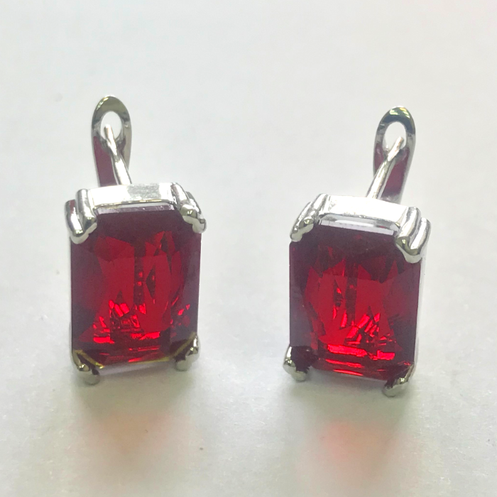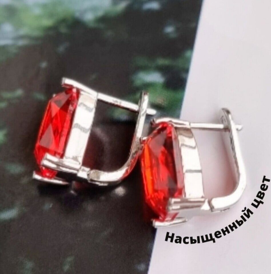 Серьги, покрытие родий, красный камень, арт.032.115