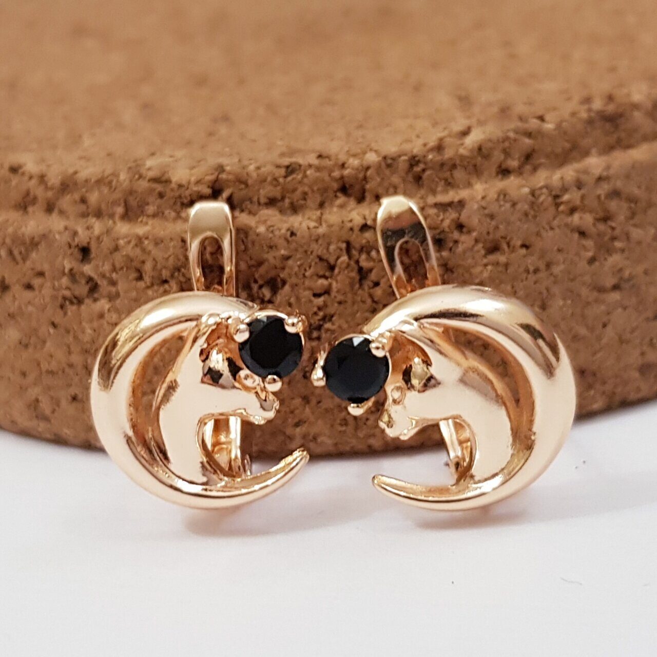 Серьги позолоченные с черными фианитами, коллекция "Дубай", 60804, арт. 647.674