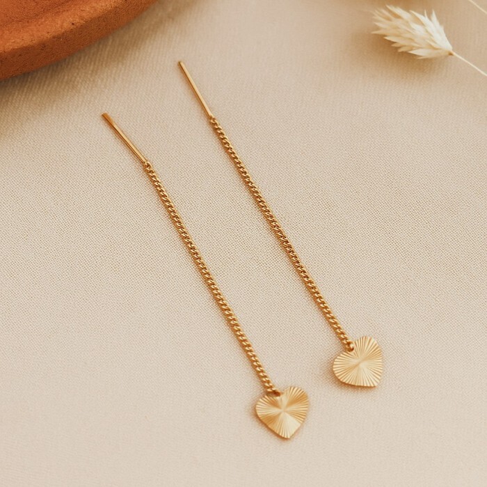 Серьги протяжки сердце ювелирная бижутерия Дубайское золото с покрытием позолотой, арт.314.739