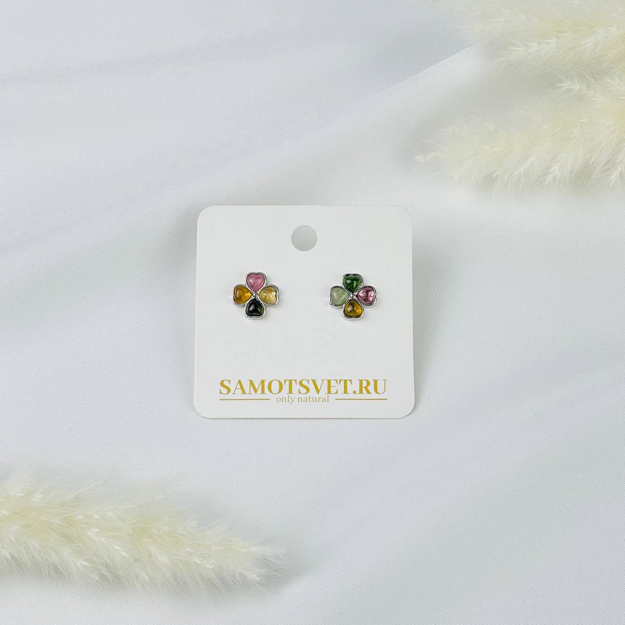 Радуга Самоцветов Серьги-пусеты из Турмалина микс