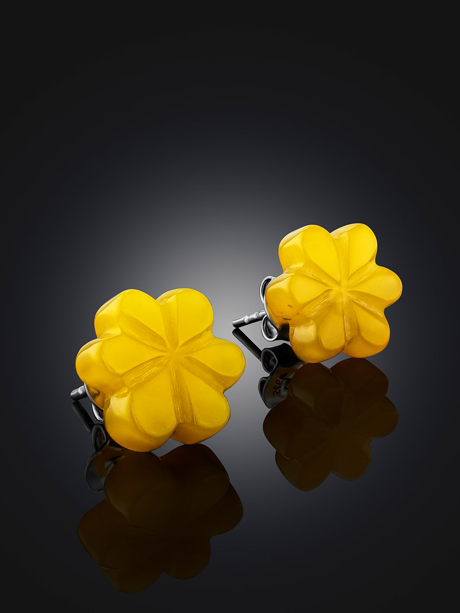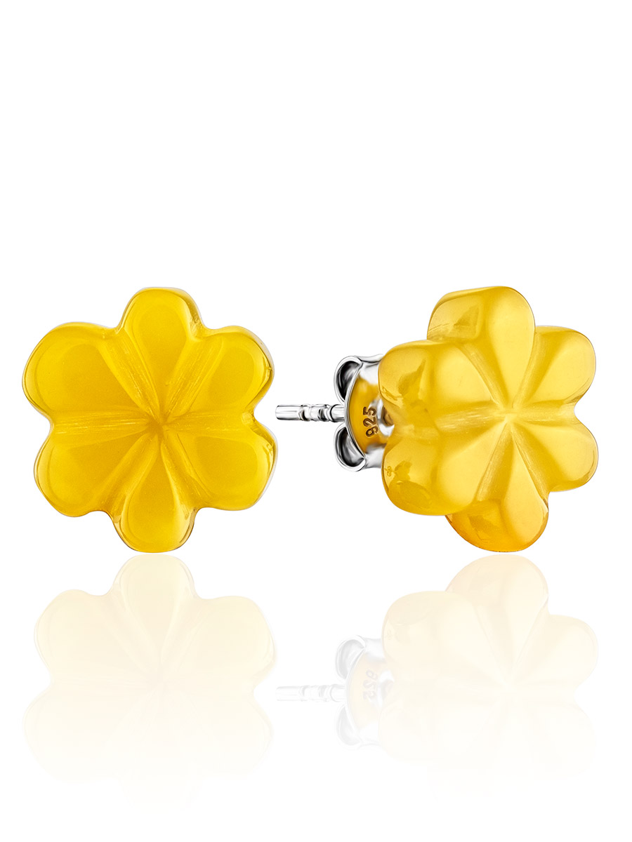 Серьги-пусеты с натуральным медовым янтарем «Настурция»
