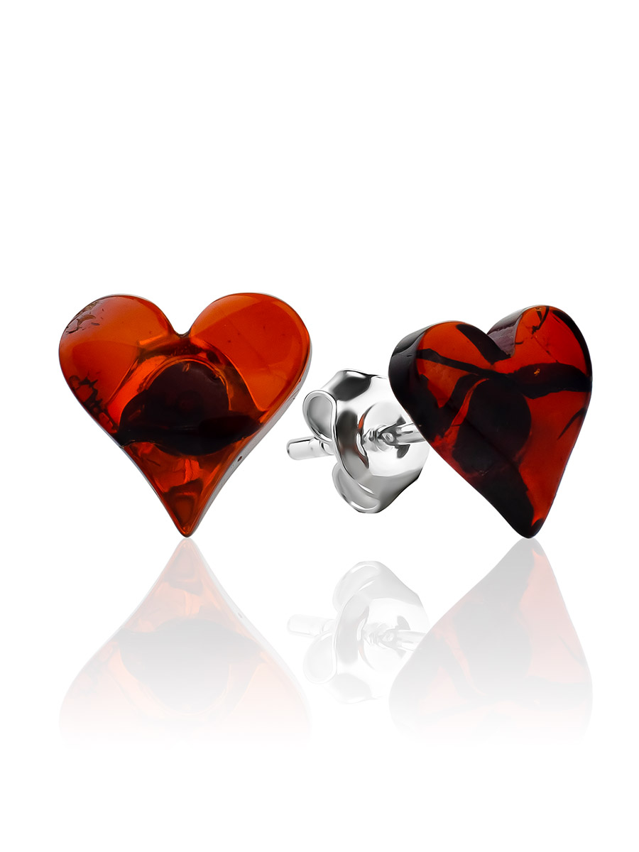 Серьги-пусеты с натуральным вишнёвым янтарем «Червы»