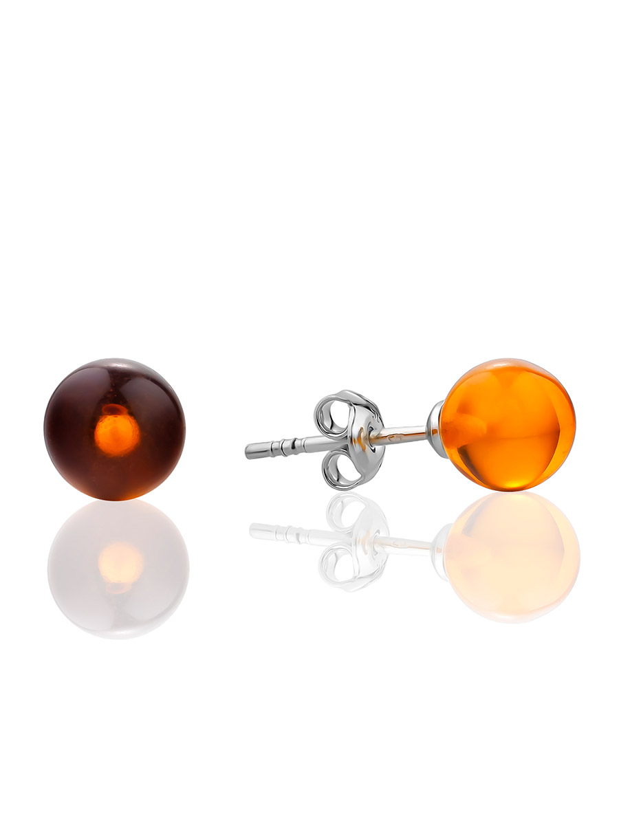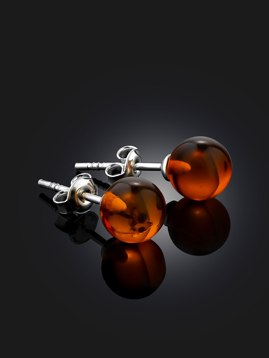 Серьги-пусеты с натуральным янтарем «Шарики коньячные»