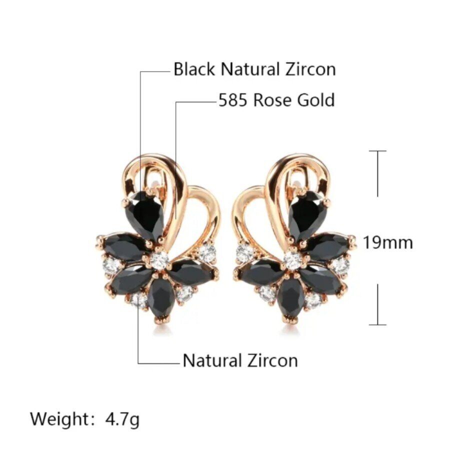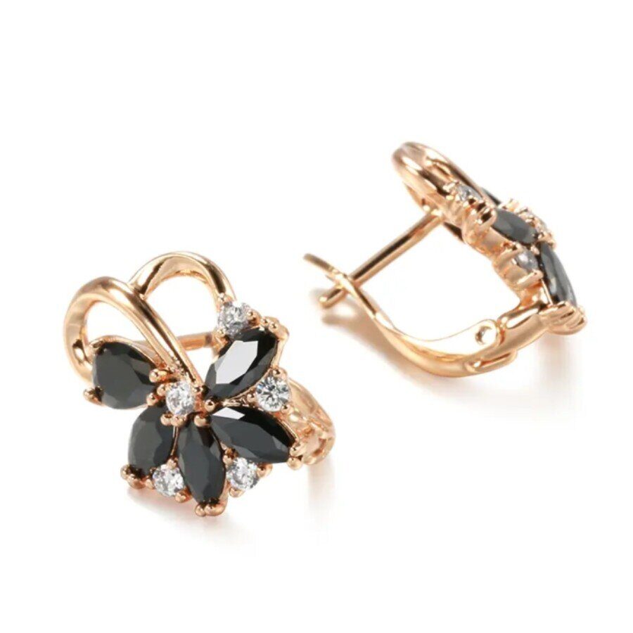Серьги с черными камнями, покрытие позолота 585 пробы,H0469, арт.212.024