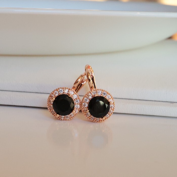 Серьги с круглым камнем ювелирная бижутерия коллекция "Дубай" покрытие позолота, вставка: фианиты, цвет: черный, арт.314.231