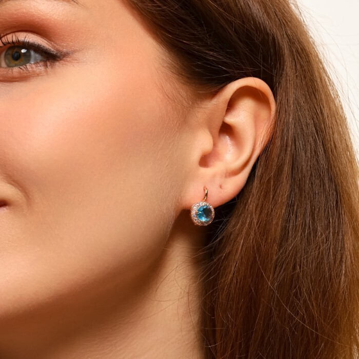 Серьги с круглым камнем ювелирная бижутерия коллекция "Дубай" покрытие позолота, вставка: фианиты, цвет: голубой, арт.314.233