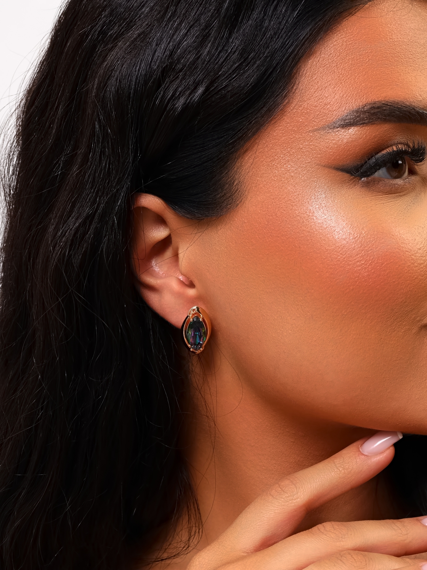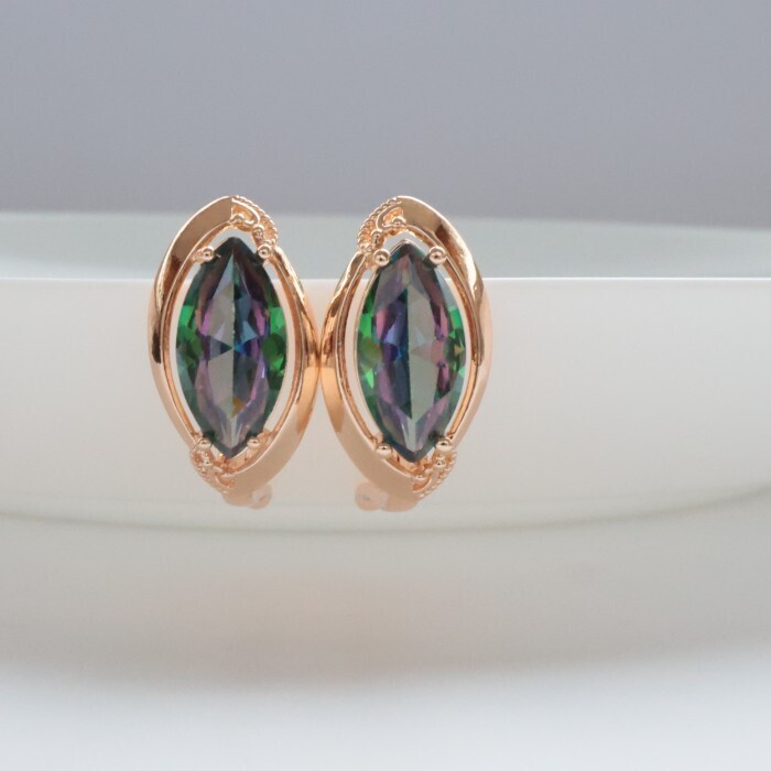 Серьги с крупным камнем ювелирная бижутерия коллекция "Дубай" покрытие: позолота, вставка: фианиты, цвет: мистик, арт.314.377