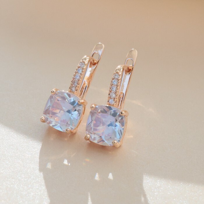 Серьги с крупным камнем ювелирная бижутерия коллекция "Дубай", покрытие позолота, вставка: фианиты, цвет: прозрачный, арт.213.559
