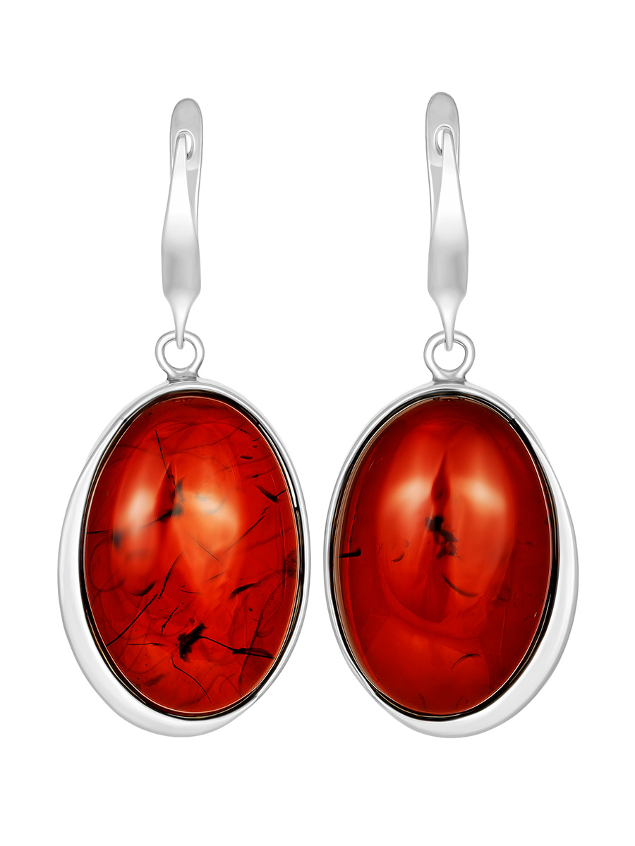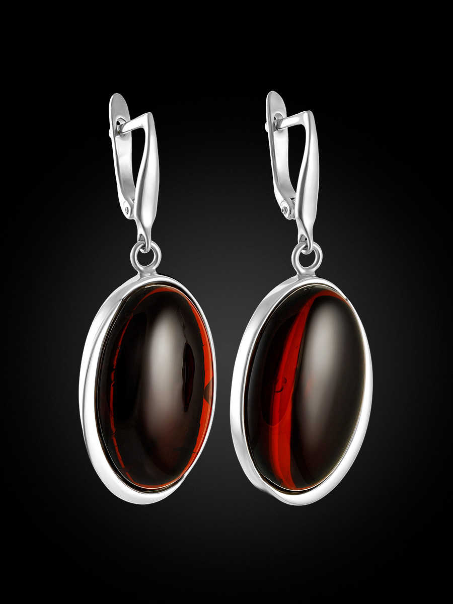 Серьги с насыщенно-вишневым янтарем «Лагуна»