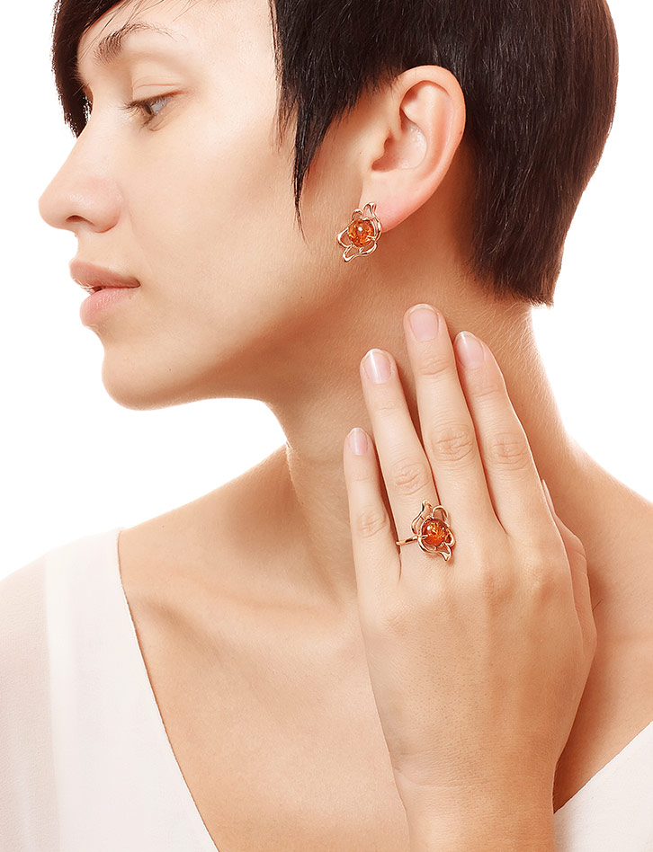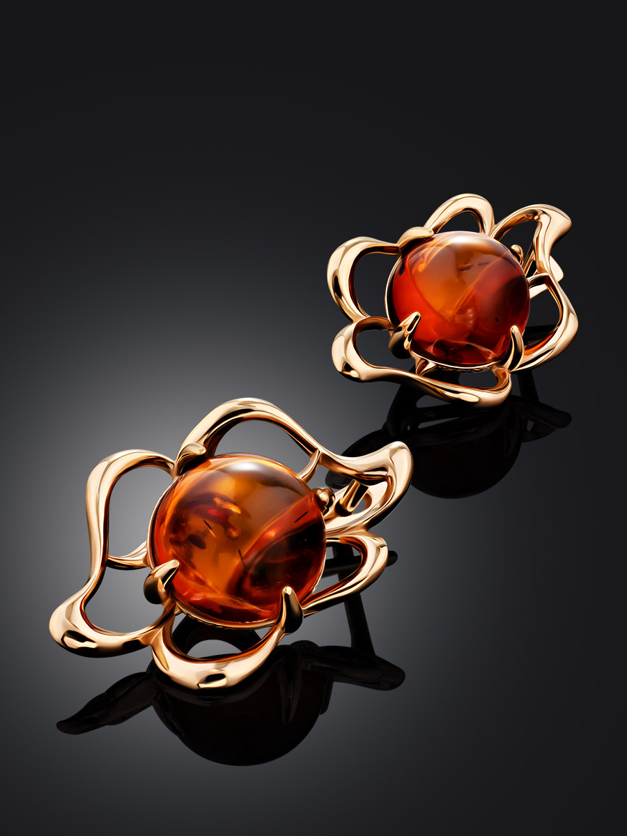 Серьги с натуральным балтийским коньячным янтарём «Юнона»