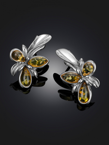 Серьги с натуральным балтийским янтарём зелёного цвета «Одуванчик»