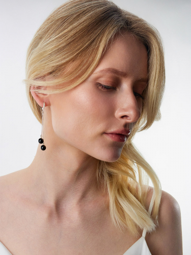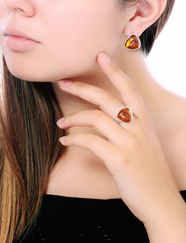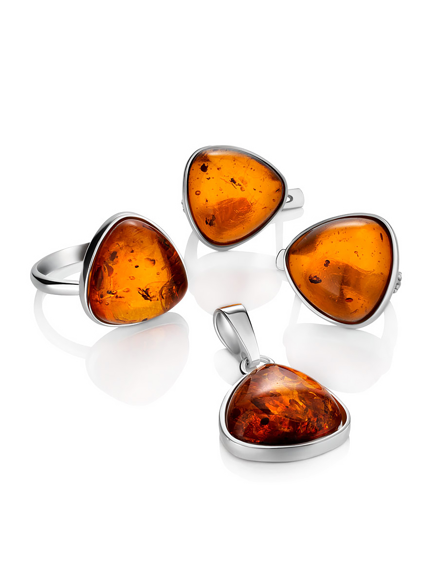 Серьги с натуральным искрящимся коньячным янтарем треугольной формы «Дельта»