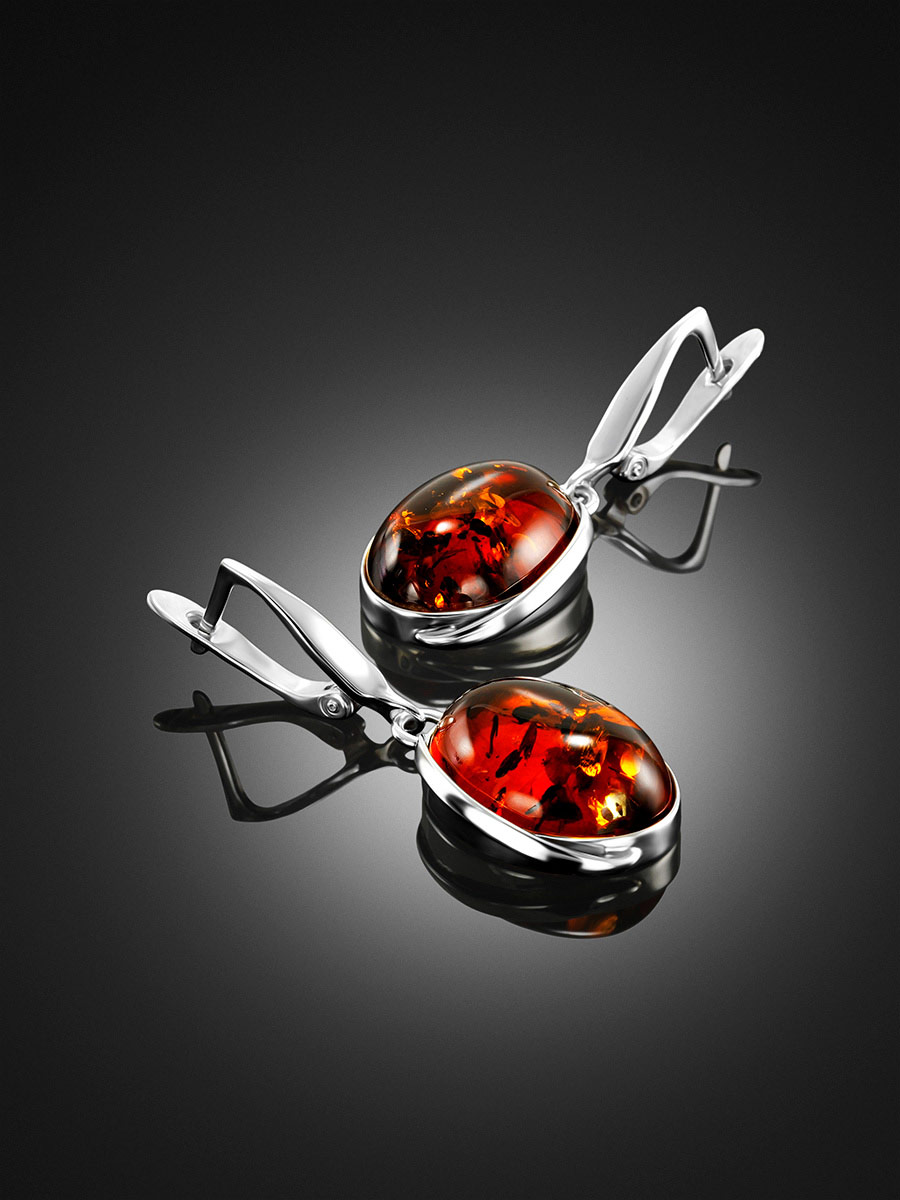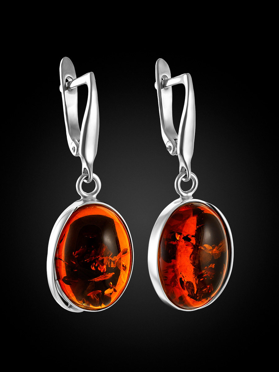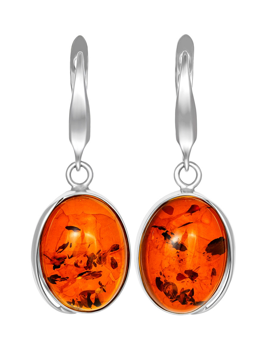 Серьги с натуральным искрящимся янтарем коньячного цвета «Лагуна»