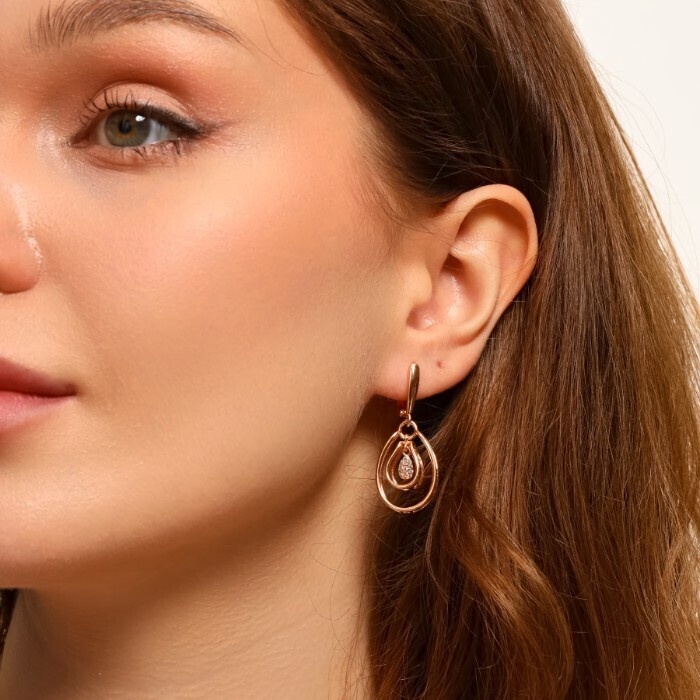 Серьги с подвеской ювелирная бижутерия коллекция "Дубай", покрытие позолота, вставка: фианиты, цвет: прозрачный, арт.213.558