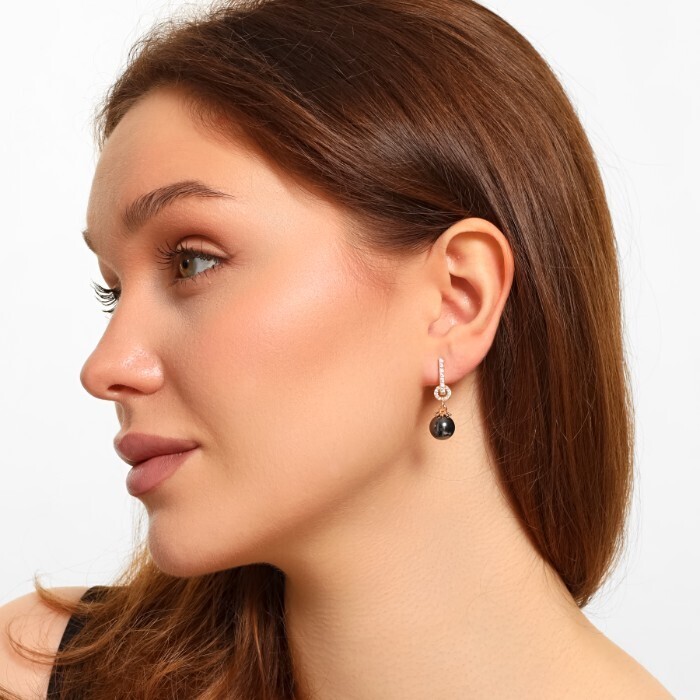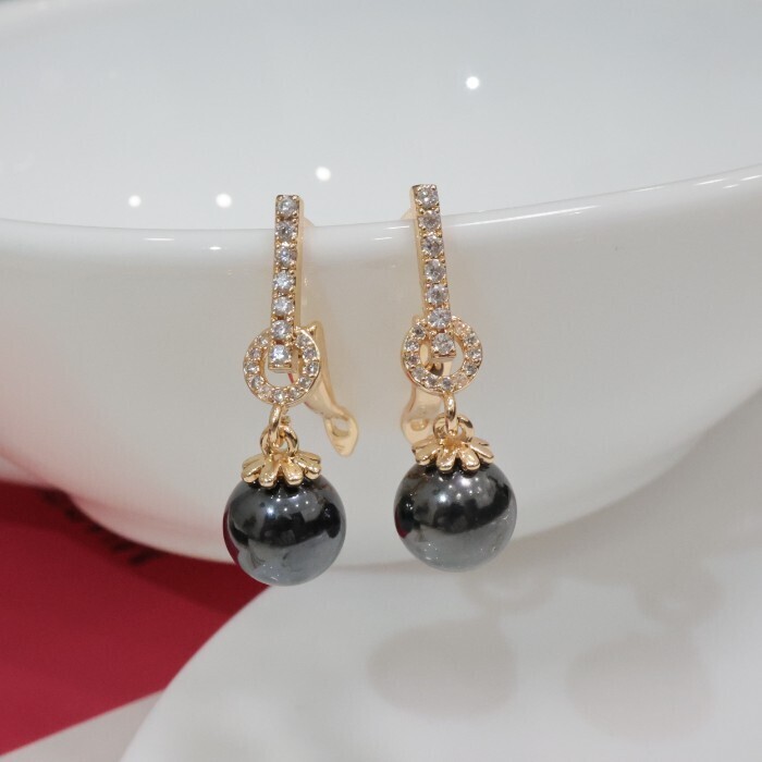Серьги с подвеской ювелирная бижутерия коллекция "Дубай", покрытие позолота, вставка: фианиты и искусственный жемчуг, цвет: прозрачный и серый, арт.215.241