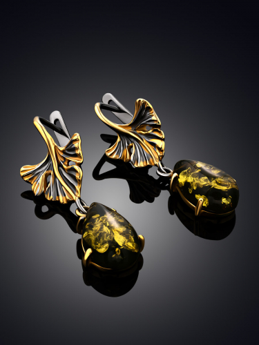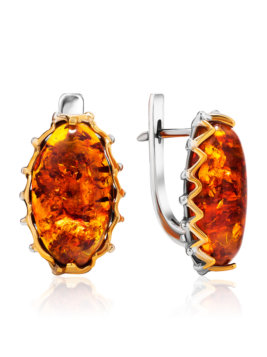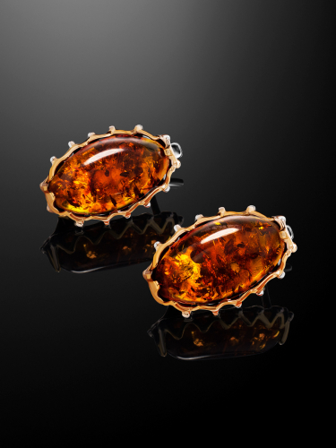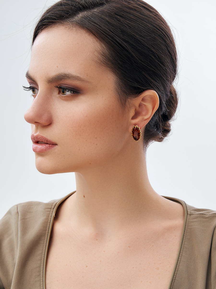 Серьги с позолотой, украшенные коньячным янтарём «Сеговия»